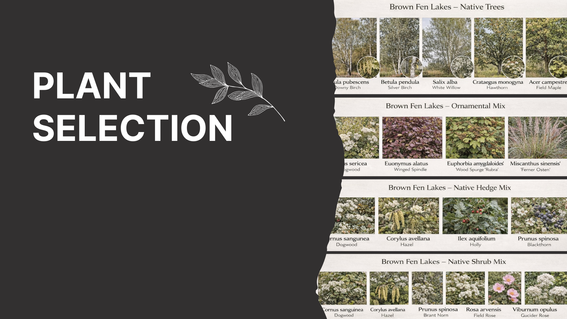 The plant selection for this project will consist exclusively of native UK species to encourage and support local biodiversity. Incorporating non-native species would not be approved under planning regulations, as only UK-native plants are considered acceptable for promoting ecological sustainability and habitat creation