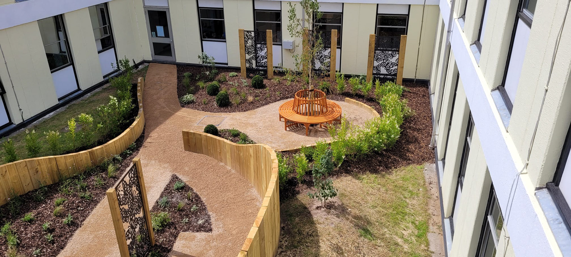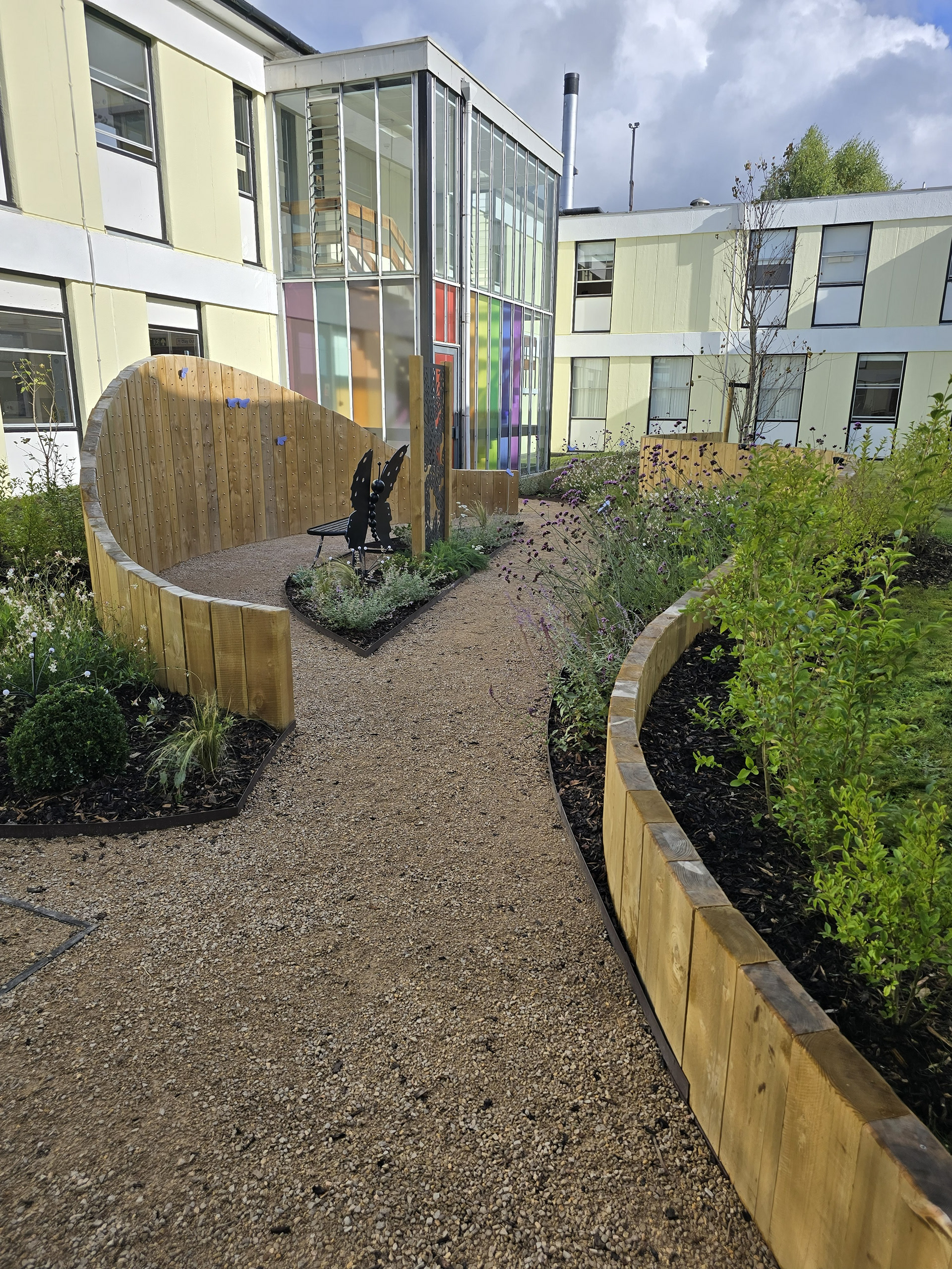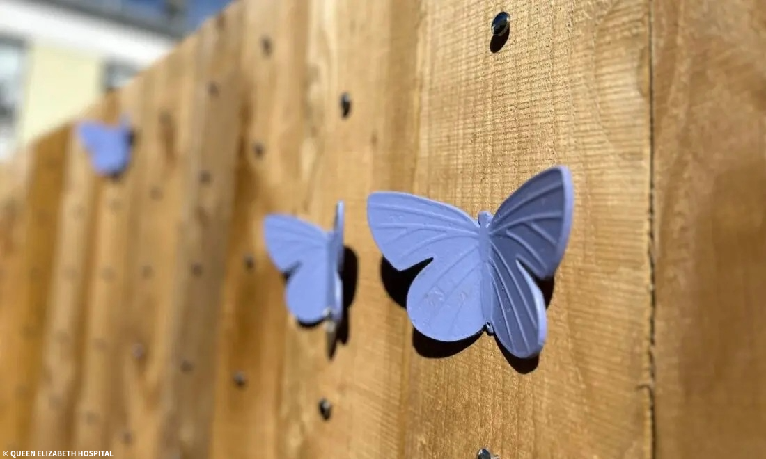 A key feature of the garden is the memorial wall, where families can place a handcrafted metal butterfly symbolising a lost baby. This central element creates a shared focal point of remembrance while allowing each tribute to represent an individual story.